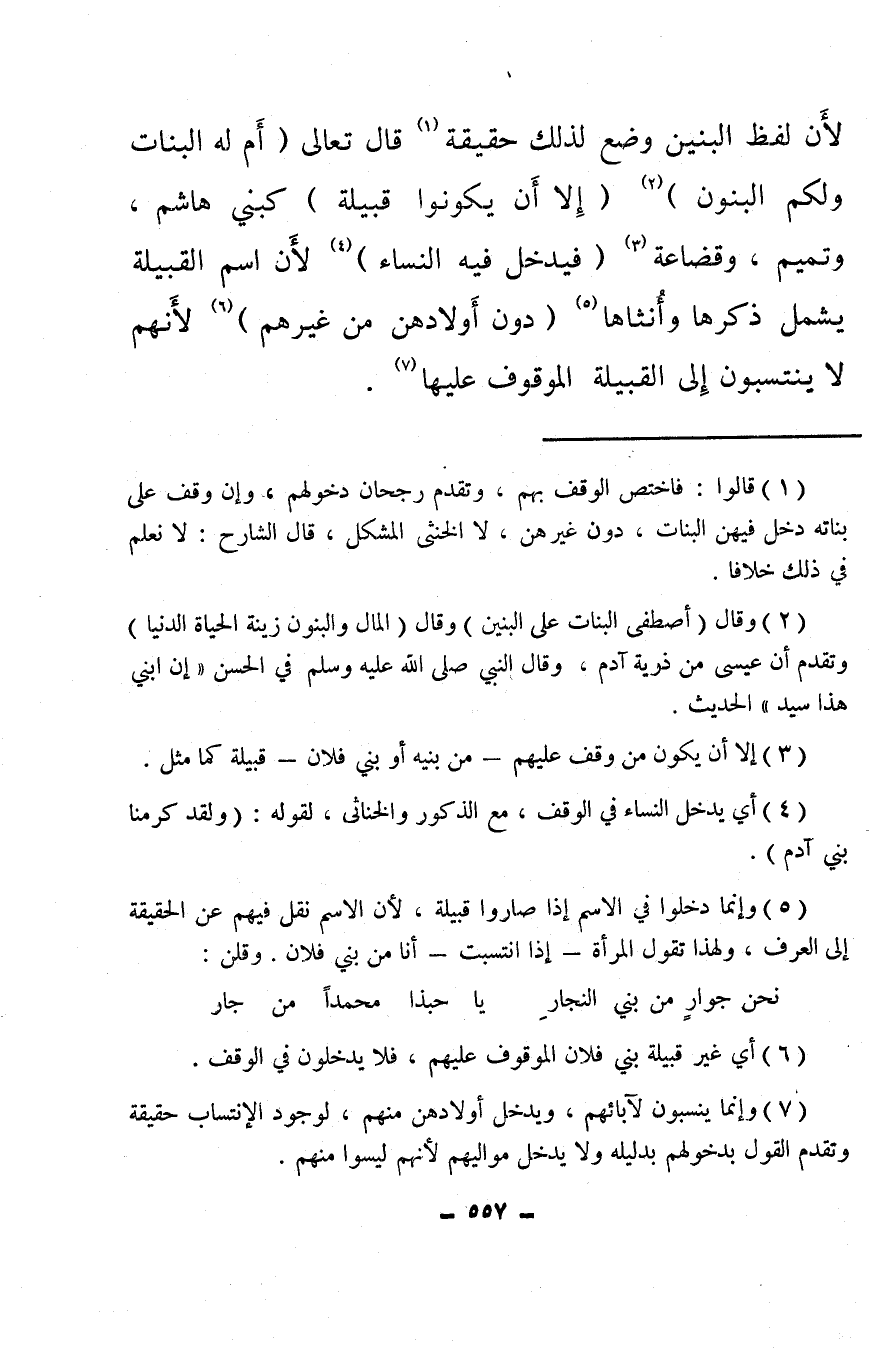 (¬5) وإنما دخلوا في الاسم إذا صاروا قبيلة، لأن الاسم نقل فيهم عن الحقيقة إلى العرف، ولهذا تقول المرأة – إذا انتسبت – أنا من بني فلان. وقلن: