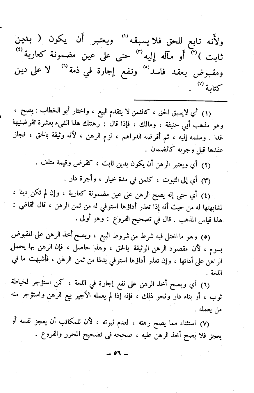 (¬4) أي حتى إنه يصح الرهن على عين مضمونة كعارية، وإن لم تكن دينًا، لمشابهتها له من حيث أنه إذا تعذر أداؤها استوفي له من ثمن الرهن، قال القاضي: هذا قياس المذهب. قال في تصحيح الفروع: وهو أولى.