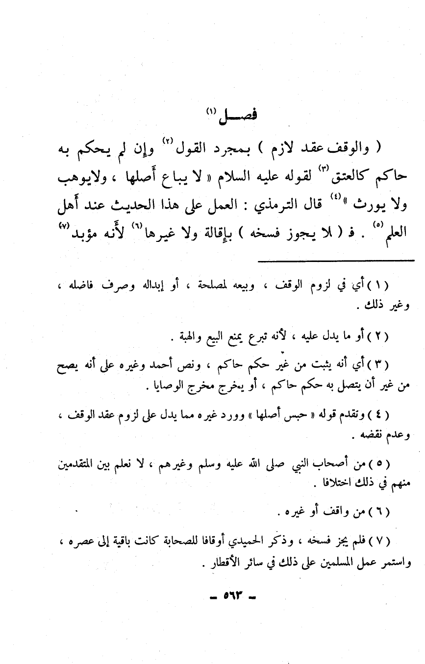 (¬7) فلم يجز فسخه، وذكر الحميدي أوقافا للصحابة كانت باقية إلى عصره، واستمر عمل المسلمين على ذلك في سائر الأقطار.