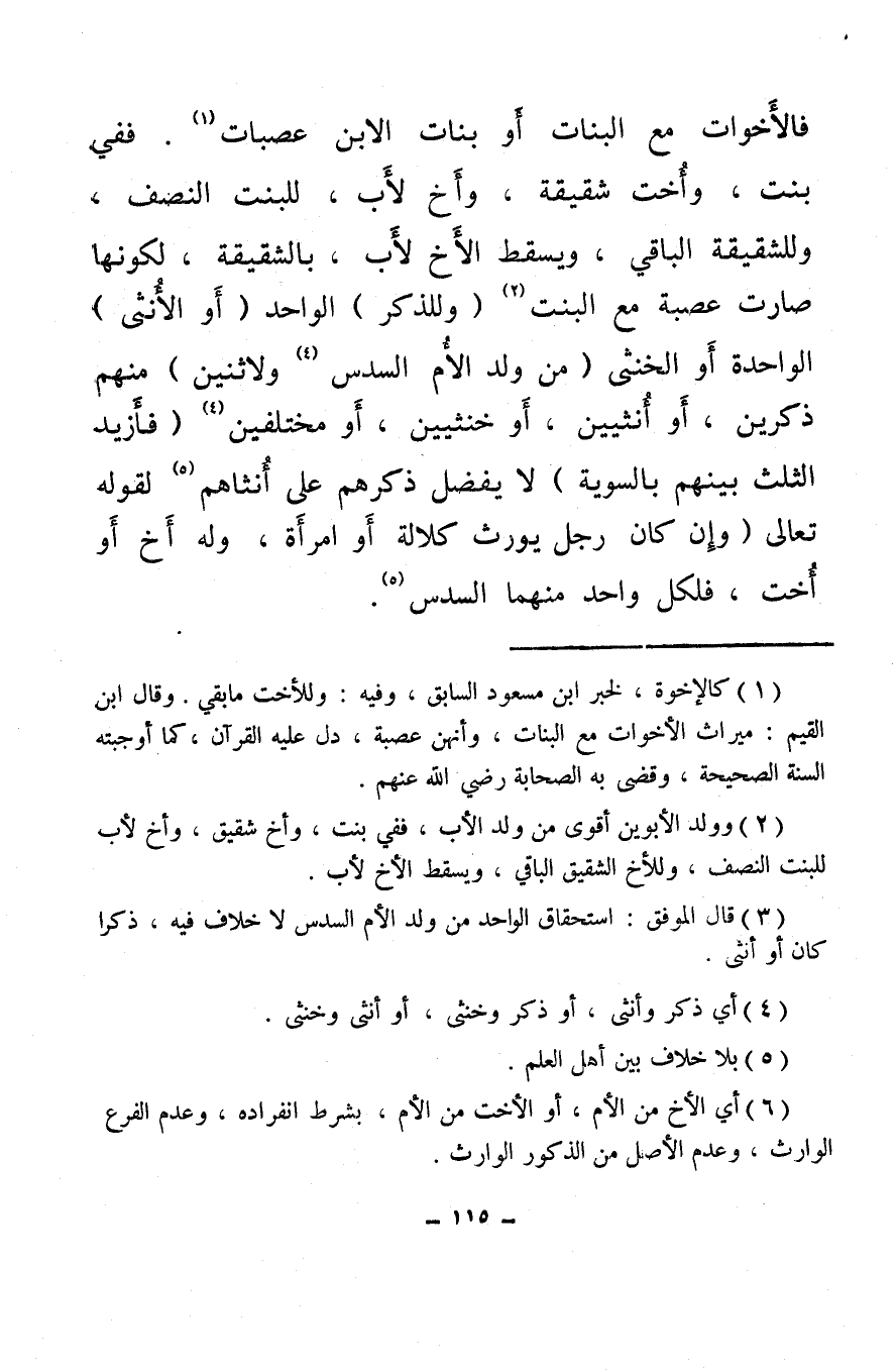 (¬1) كالإخوة، لخبر ابن مسعود السابق، وفيه: وللأخت ما بقي. وقال ابن القيم: مراث الأخوات مع البنات، وأنهن عصبة، دل عليه القرآن، كما أوجبته السنة الصحيحة، وقضى به الصحابة - رضي الله عنهم -.