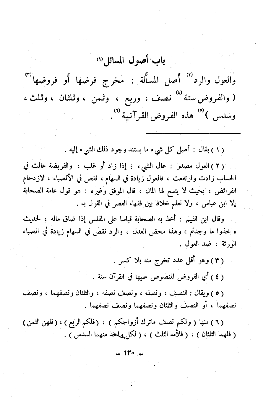 والعول والرد (¬2) أَصل المسأَلة: مخرج فرضها أَو فروضها (¬3) (والفروض ستة (¬4) نصف، وربع، وثمن، وثلثان، وثلث، وسدس) (¬5) هذه الفروض القرآنية (¬6) .