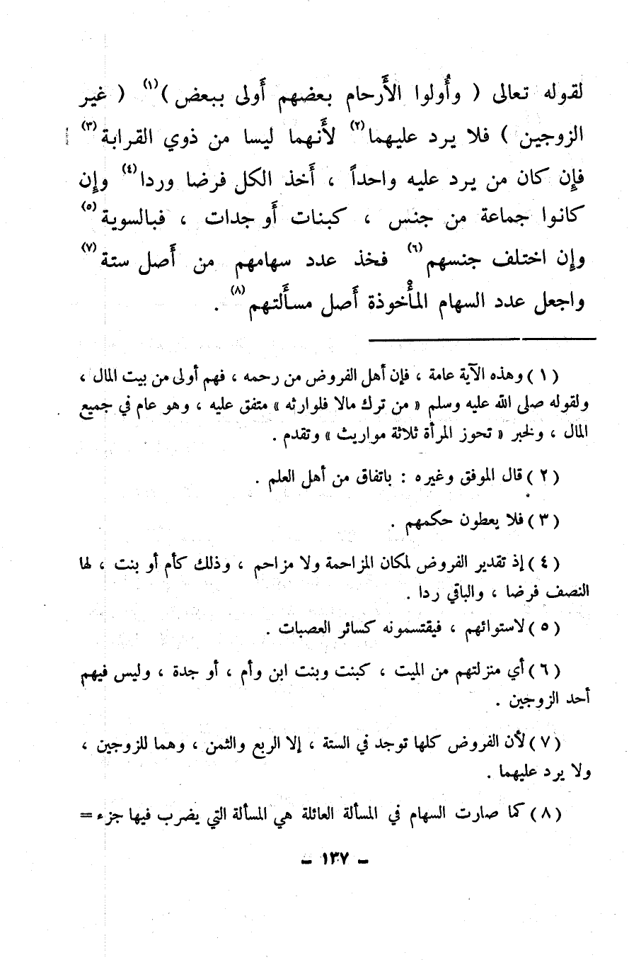 (¬8) كما صارت السهام في المسألة العائلة هي المسألة التي يضرب فيها جزء السهم، وأصول مسائل الرد التي ليس فيها أحد الزوجين أربعة، اثنان، وثلاثة، وأربعة، وخمسة.
