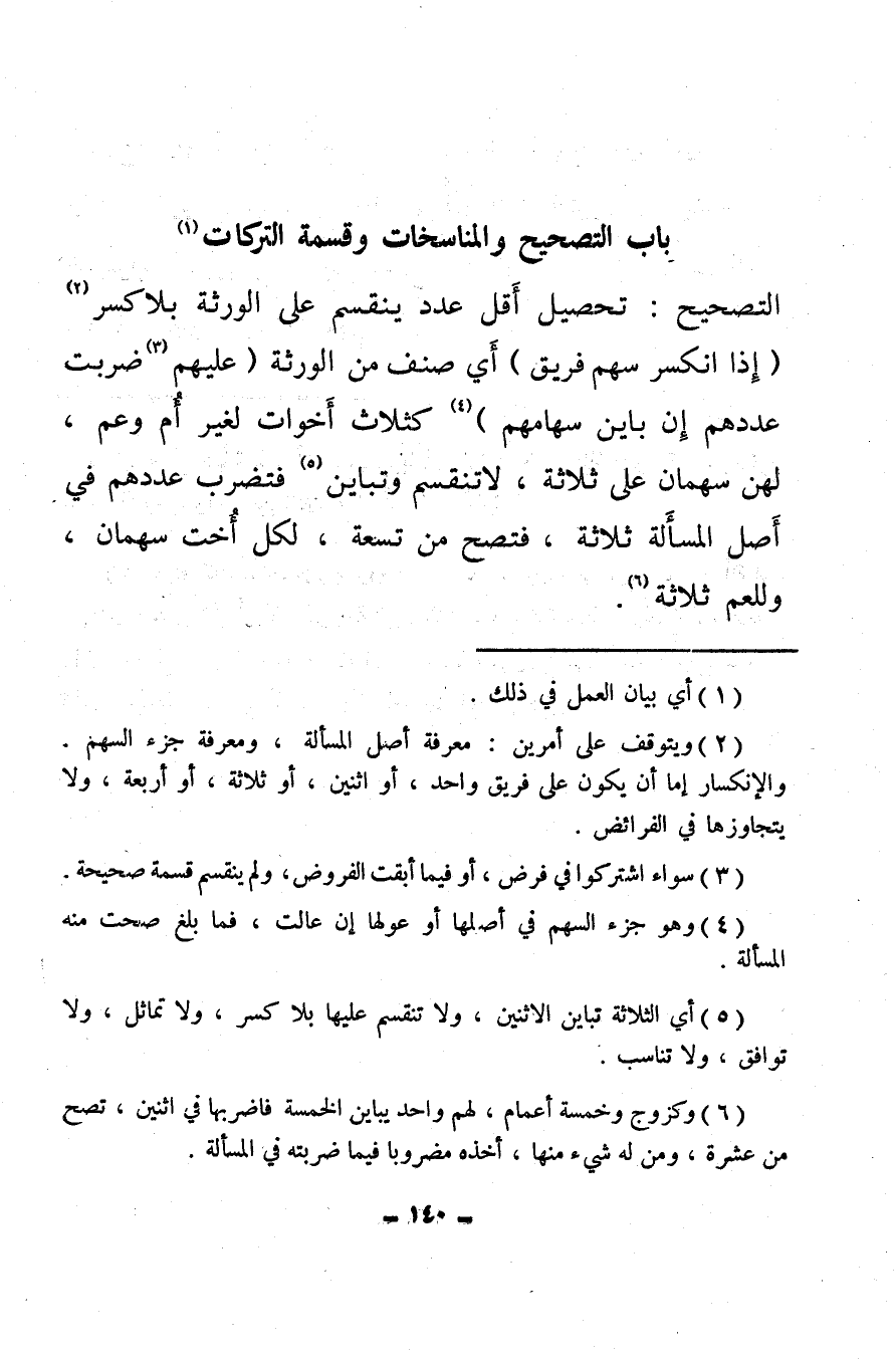 (¬2) ويتوقف على أمرين: معرفة أصل المسألة، ومعرفة جزء إلسهم. والانكسار إما أن يكون على فريق واحد، أو اثنين، أو ثلاثة، أو أربعة، ولا يتجاوزها في الفرائض.