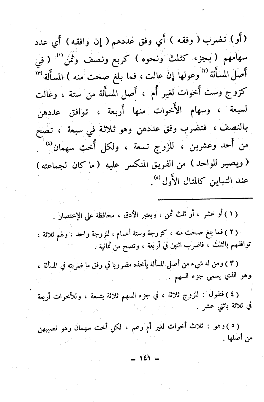 (¬3) ومن له شيء من أصل المسألة يأخذه مضروبا في وفق ما ضربته في المسألة، وهو الذي يسمى جزء السهم.