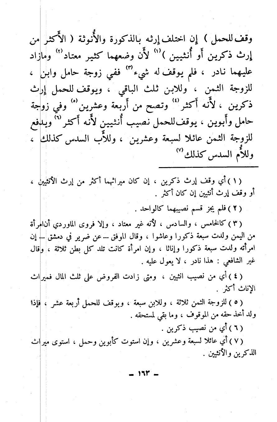 (¬1) أي وقف إرث ذكرين، إن كان ميراثهما أكثر من إرث الأنثيين، أو وقف إرث أنثيين إن كان أكثر.