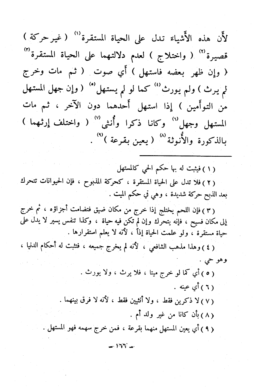 (¬3) فإن اللحم يختلج إذا خرج من مكان ضيق فتضامت أجزاؤه، ثم خرج إلى مكان فسيح، فإنه يتحرك وإن لم تكن فيه حياة، وكذا تنفس يسير لا يدل على حياة مستقرة، ولو علمت الحياة إذًا، لأنه لا يعلم استقرارها.