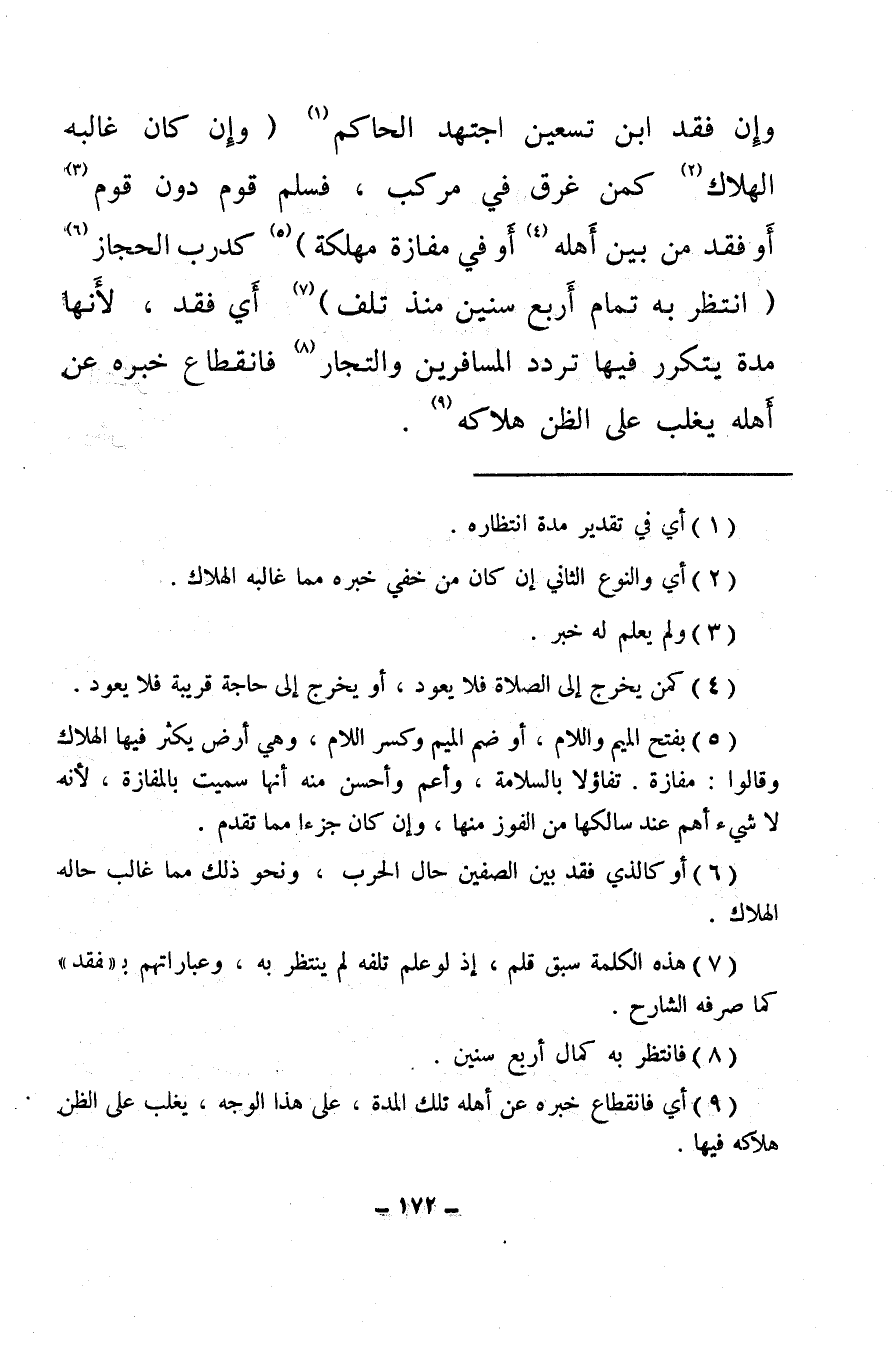 (¬9) أي فانقطاع خبره عن أهله تلك المدة، على هذا الوجه، يغلب على الظن هلاكه فيها.
