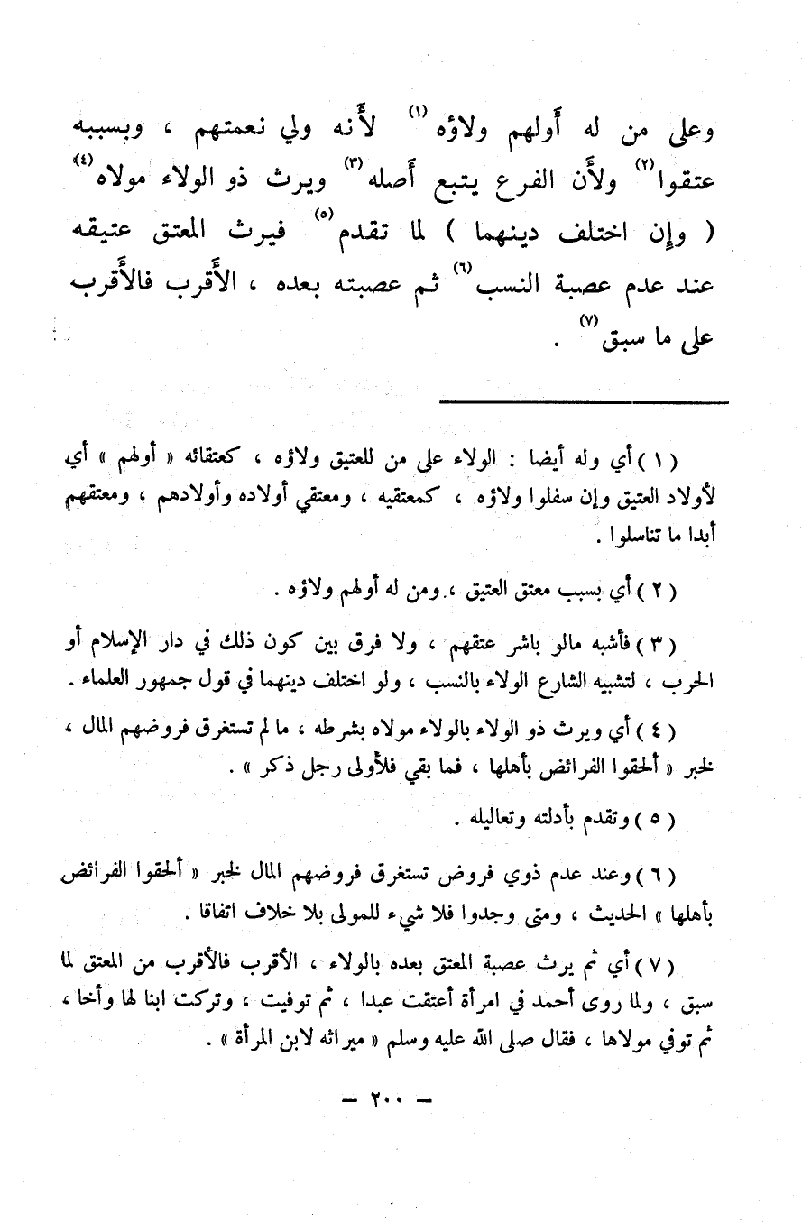 (¬7) أي ثم يرث عصبة المعتق بعده بالولاء، الأقرب فالأقرب من المعتق لما سبق، ولما روى أحمد في امرأة أعتقت عبدا، ثم توفيت، وتركت ابنا لها وأخا، ثم توفي مولاها، فقال صلى الله عليه وسلم: «ميراثه لابن المرأة» .