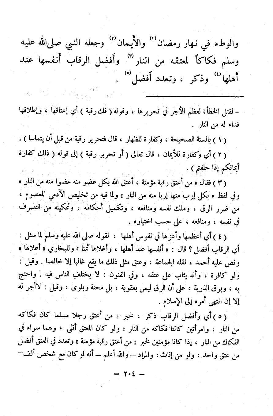 والوطء في نهار رمضان (¬1) والأَيمان (¬2) وجعله النبي صلى الله عليه وسلم فكاكًا لمعتقه من النار (¬3) وأَفضل الرقاب أَنفسها عند أَهلها (¬4) وذكر، وتعدد أَفضل (¬5) .