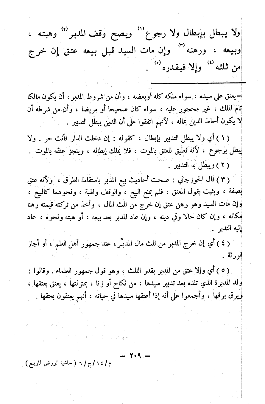 (¬4) أي إن خرج المدبر من ثلث مال المدبَِر، عند جمهور أهل العلم، أو أجاز الورثة.