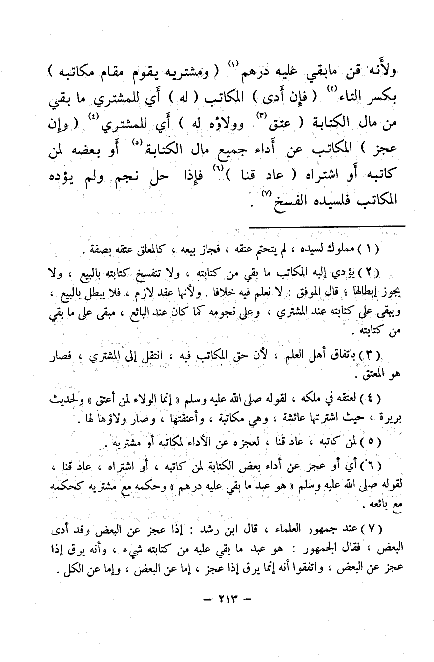 (¬5) لمن كاتبه، عاد قنا، لعجزه عن الأداء لمكاتبه أو مشتريه.
