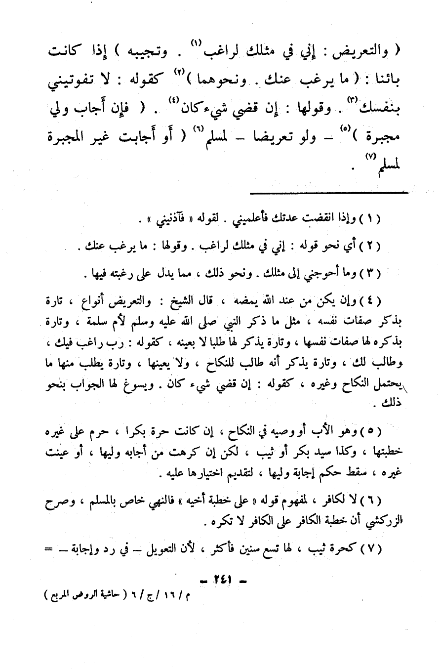(¬6) لا لكافر، لمفهوم قوله «على خطبة أخيه» فالنهي خاص بالمسلم، وصرح الزركشي أن خطبة الكافر على الكافر لا تكره.