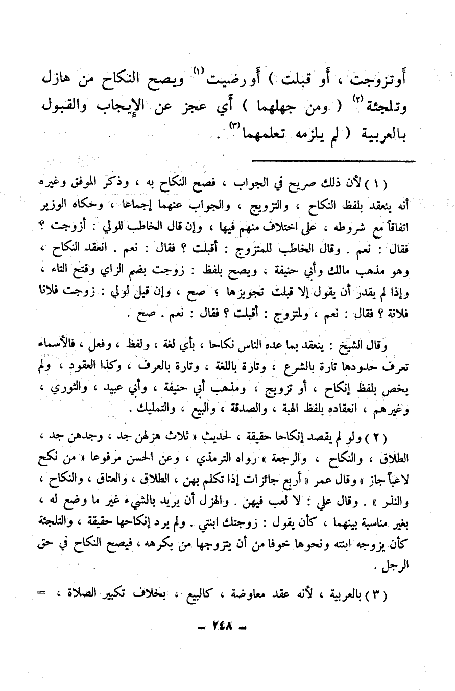 (¬3) بالعربية، لأنه عقد معاوضة، كالبيع، بخلاف تكبير الصلاة،