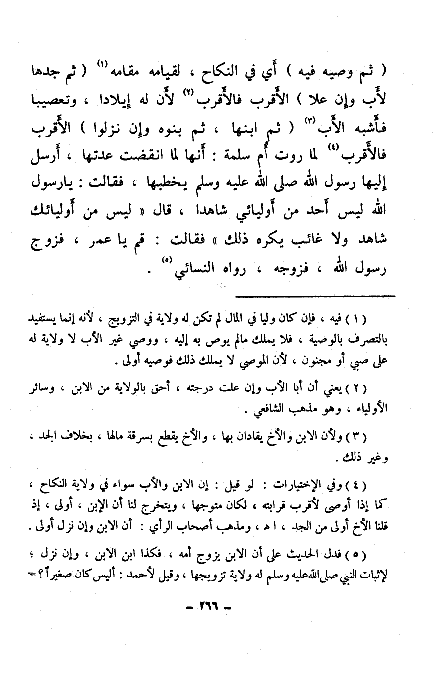 (¬4) وفي الاختيارات: لو قيل: إن الابن والأب سواء في ولاية النكاح، كما إذا أوصي لأقرب قرابته، لكان متوجها، ويتخرج لنا أن الابن، أولي، إذ قلنا الأخ أولى من الجد. اهـ. ومذهب أصحاب الرأي: أن الابن وإن نزل أولي.