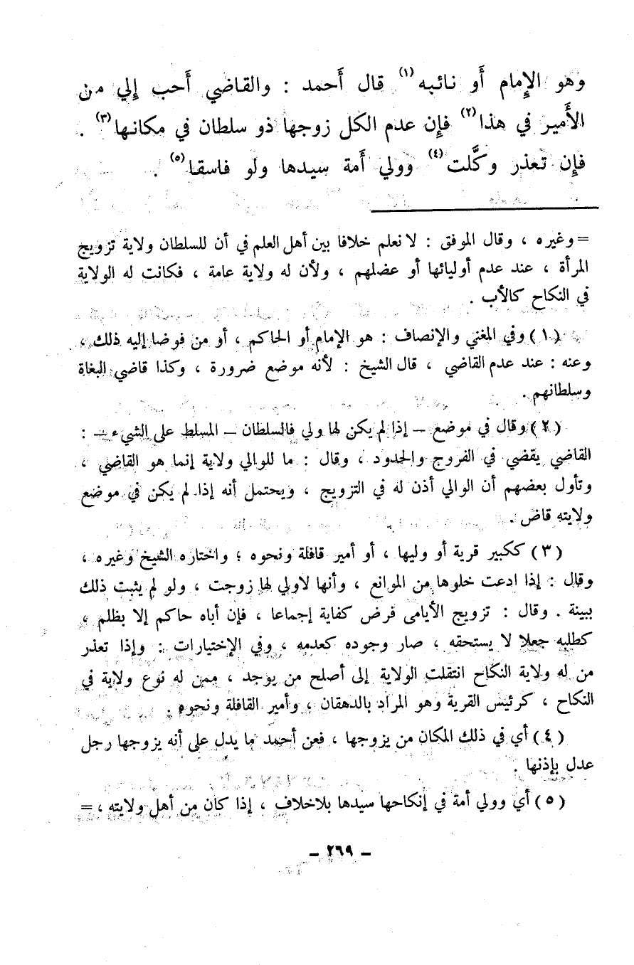 (¬3) ككبير قرية أو وليها، أو أمير قافلة ونحوه؛ واختاره الشيخ وغيره، وقال: إذا ادعت خلوها من الموانع، وأنها لا ولي لها زوجت، ولو لم يثبت ذلك ببينة. وقال: تزويج الأيامى فرض كفاية إجماعا، فإن أباه حاكم إلا بظلم، كطلبه جعلا لا يستحقه، صار وجوده كعدمه، وفي الاختيارات: وإذا تعذر من له ولاية النكاح انتقلت الولاية إلى أصلح من يوجد، ممن له نوع ولاية في النكاح، كرئيس القرية وهو المراد بالدهقان، وأمير القافلة ونحوه.
