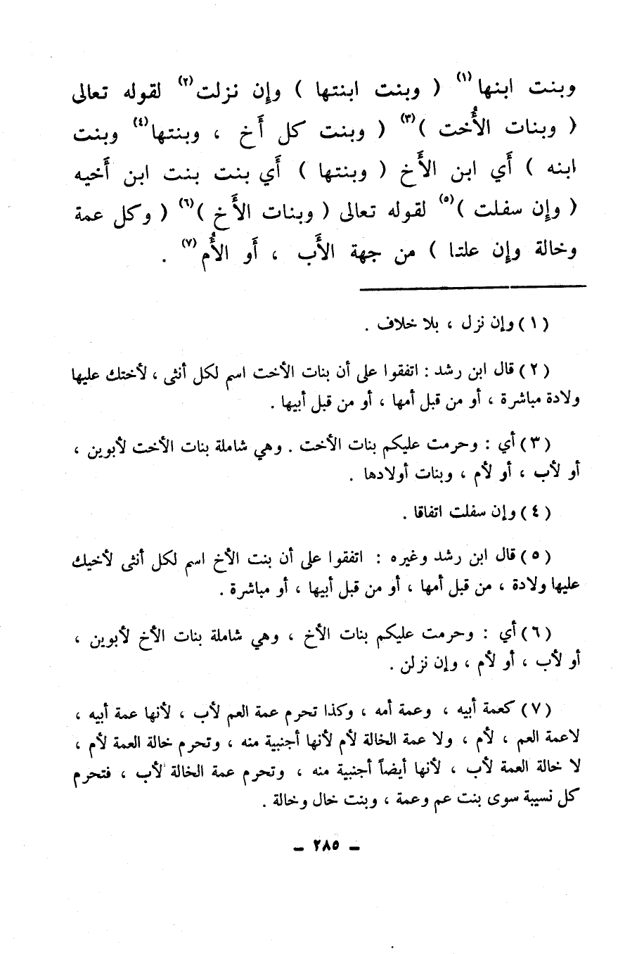 (¬5) قال ابن رشد وغيره: اتفقوا على أن بنت الأخ اسم لكل أنثى لأخيك عليها ولادة، من قبل أمها، أو من قبل أبيها، أو مباشرة.