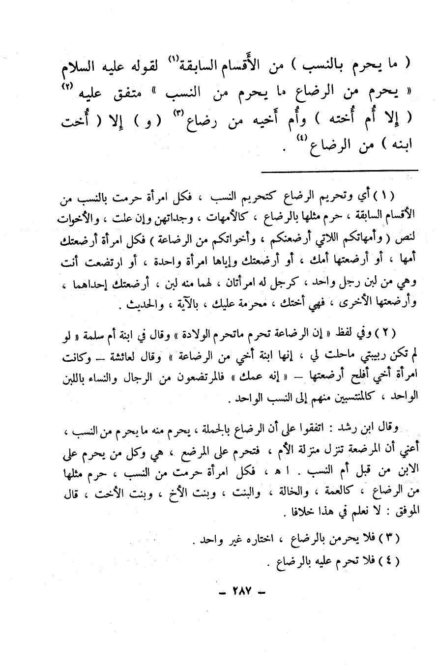 (¬2) وفي لفظ «إن الرضاعة تحرم ما تحرم الولادة» وقال في ابنة أم سلمة «لو لم تكن ربيبتى ما حلت لي، إنها ابنة أخى من الرضاعة» وقال لعائشة - وكانت امرأة أخى أفلح أرضعتها - «إنه عمك» فالمرتضعون من الرجال والنساء باللبن الواحد، كالمنتسبين منهم إلى النسب الواحد.