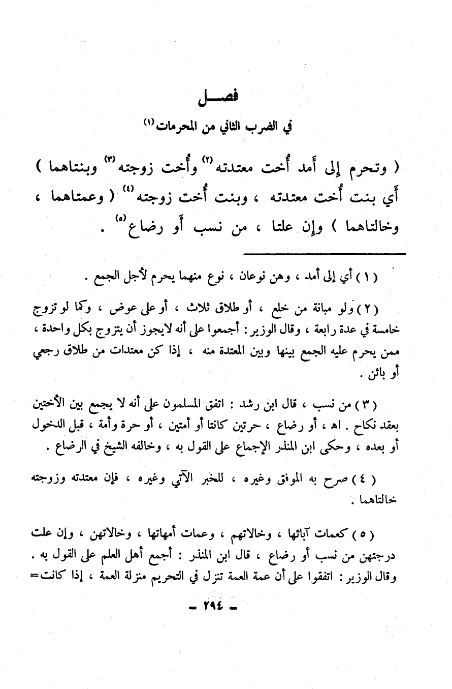 (¬3) من نسب، قال ابن رشد: اتفق المسلمون على أنه لا يجمع بين الأختين بعقد نكاح. اهـ. أو رضاع، حرتين كانتا أو أمتين، أو حرة وأمة، قبل الدخول أو بعده، وحكى ابن المنذر الإجماع على القول به، وخالفه الشيخ في الرضاع.