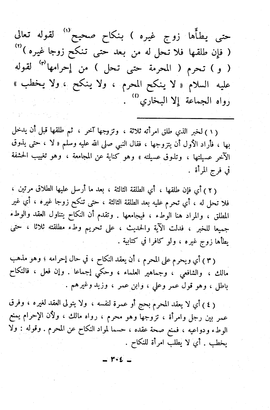 حتى يطأها زوج غيره) بنكاٍح صحيحٍ (¬1) لقوله تعالى {فَإِنْ طَلَّقَهَا فَلا تَحِلُّ لَهُ مِنْ بَعْدُ حَتَّى تَنْكِحَ زَوْجًا غَيْرَهُ} (¬2) (و) تحرم (المحرمة حتى تحل) من إحرامها (¬3) لقوله عليه السلام: «لا ينكحُ المحرمُ، ولا ينكح، ولا يخطب» رواه الجماعة إلا البخاري (¬4) .