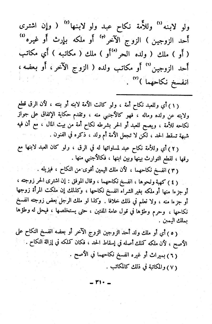 ولو لابنه (¬1) وللأمة نكاح عبد ولو لابنها (¬2) (وإن اشترى أحد الزوجين) الزوج الآخر (¬3) أو ملكه بإرث أو غيره (¬4) (أو) ملك (ولده الحر (¬5) أو) ملك (مكاتبه) أي مكاتب أحد الزوجين (¬6) أو مكاتب ولده (الزوج الآخر، أو بعضه، انفسخ نكاحهما) (¬7) .