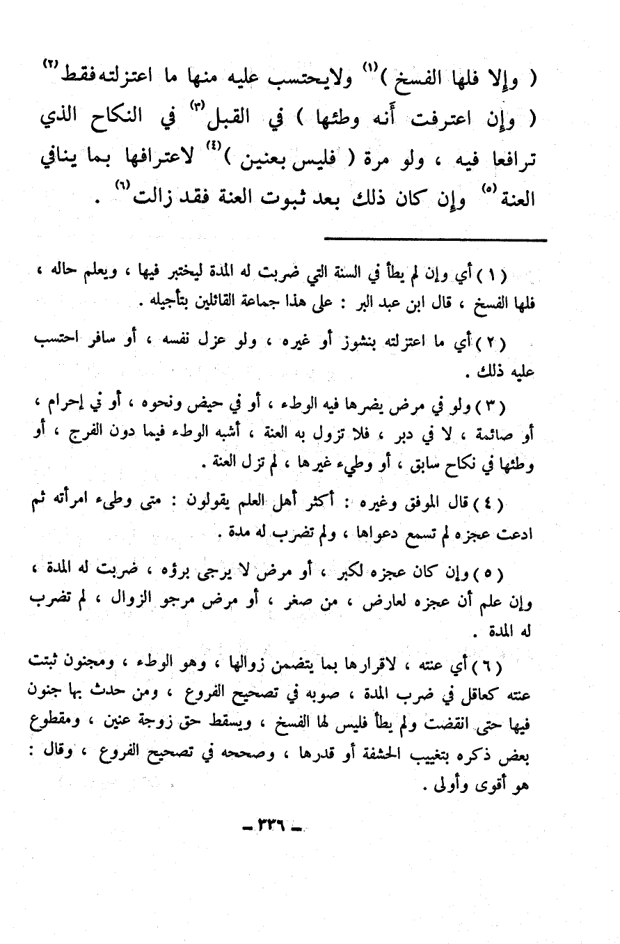 (¬6) أي عنته، لإقرارها بما يتضمن زوالها، وهو الوطءن ومجنون ثبتت عنته كعاقل في ضرب المدة، صوبه في تصحيح الفروع، ومن حدث بها جنون فيها حتى انقضت ولم يطأ فليس لها الفسخ، ويسقط حق زوجة عنين، ومقطوع بعض ذكره بتغييب الحشفة أو قدرها، وصححه في تصحيح الفروع، وقال: هو أقوى وأولى.