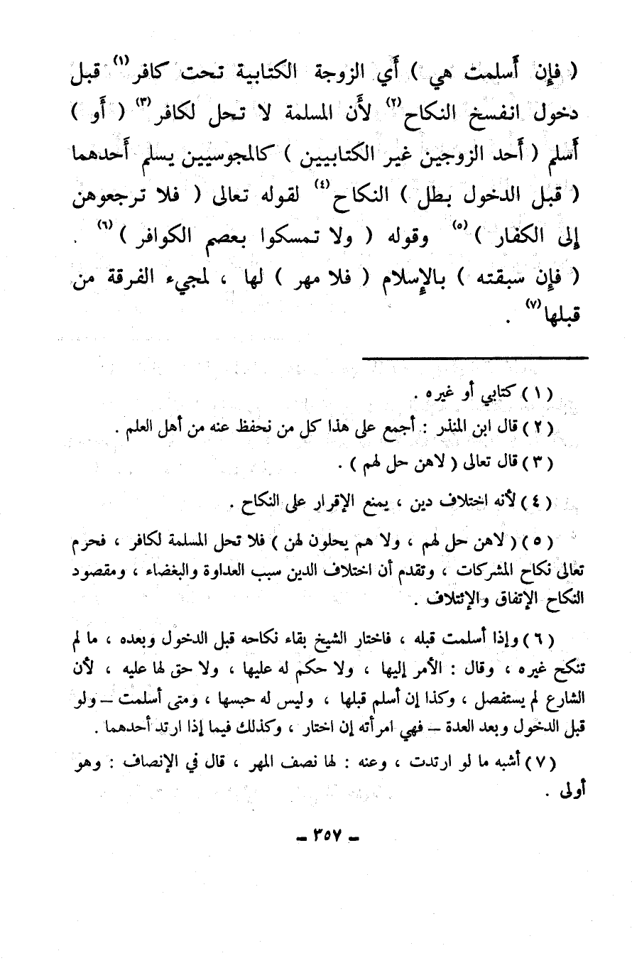 (فإن أَسلمت هي) أي الزوجة الكتابية تحت كافر (¬1) قبل دخول انفسخ النكاح (¬2) لأن المسلمة لا تحل لكافر (¬3) (أَو) أَسلم (أحد الزوجين غير الكتابيين) كالمجوسيين يسلم أحدهما (قبل الدخول بطل) النكاح (¬4) لقوله تعالى {فَلا تَرْجِعُوهُنَّ إِلَى الْكُفَّارِ} (¬5) وقوله {وَلا تُمْسِكُوا بِعِصَمِ الْكَوَافِرِ} (¬6) (فإن سبقته) بالإسلام (فلا مهر) لها، لمجيء الفرقة من قبلها (¬7) .