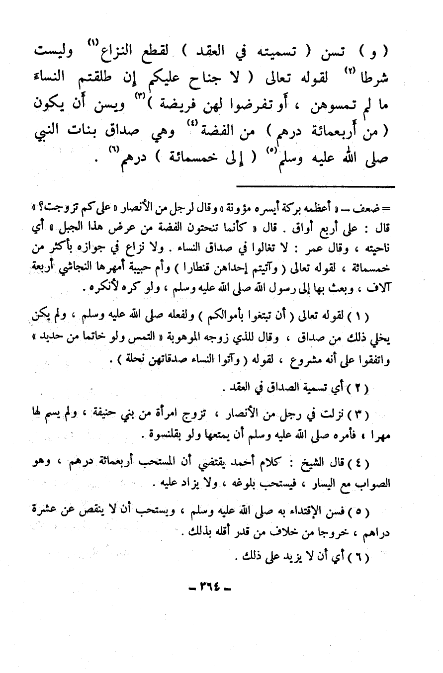 (و) تسن (تسميته في العقد) لقطع النزاع (¬1) وليست شرطا (¬2) لقوله تعالى {لا جُنَاحَ عَلَيْكُمْ إِنْ طَلَّقْتُمُ النِّسَاءَ مَا لَمْ تَمَسُّوهُنَّ أَوْ تَفْرِضُوا لَهُنَّ فَرِيضَةً} (¬3) ويسن أن يكون (من أَربعمائة درهم) من الفضة (¬4) وهي صداق بنات النبي صلى الله عليه وسلم (¬5) (إلى خمسمائة) درهم (¬6) .