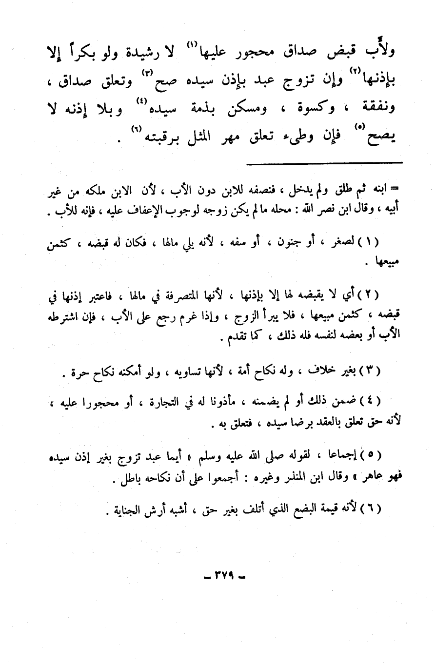 (¬1) لصغر، أو جنون، أو سفه، لأنه يلي مالها، فكان له قبضه، كثمن مبيعها.