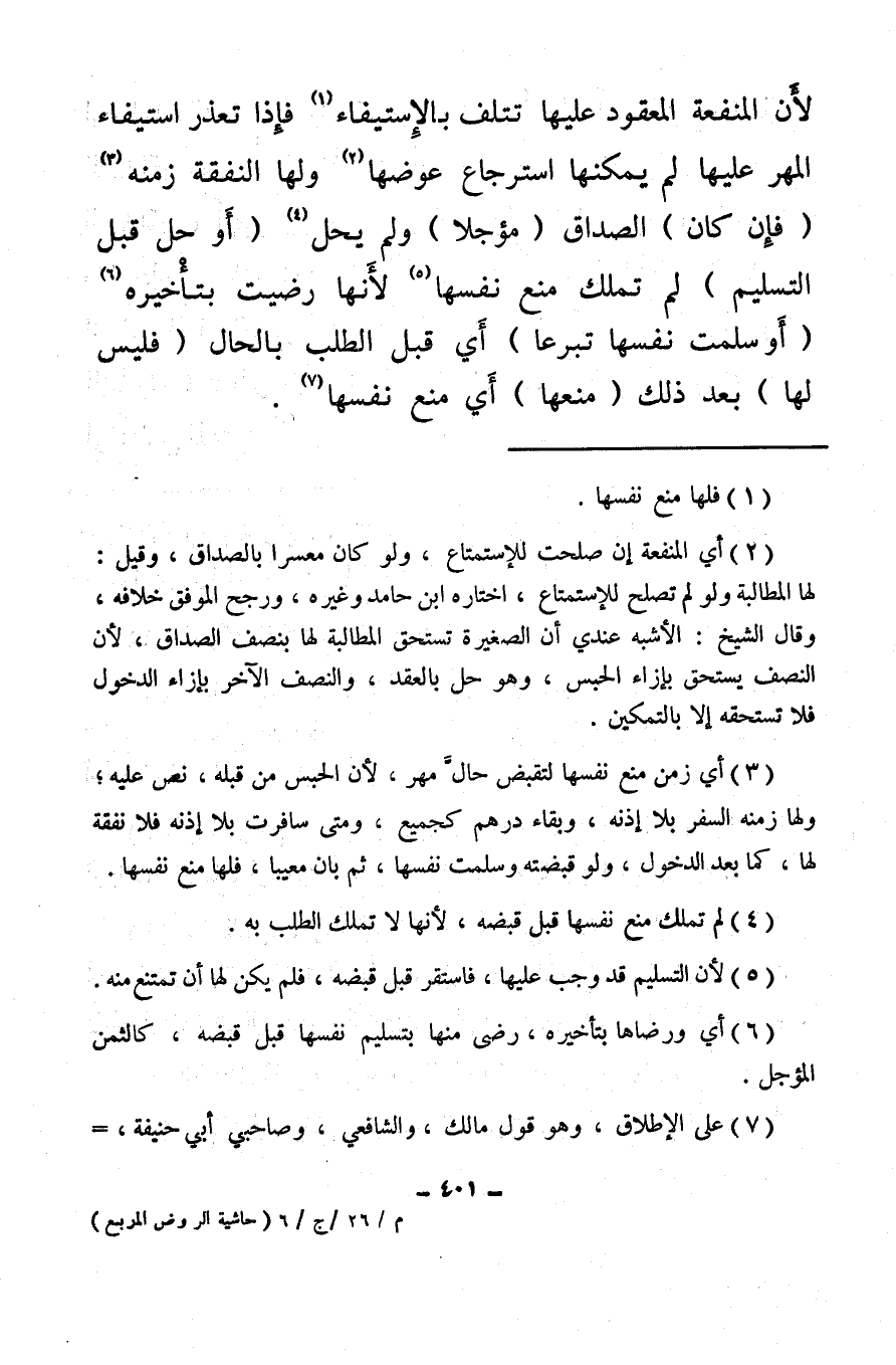 (¬6) أي ورضاها بتأخيره، رضى منها بتسليم نفسها قبل قبضه، كالثمن المؤجل.