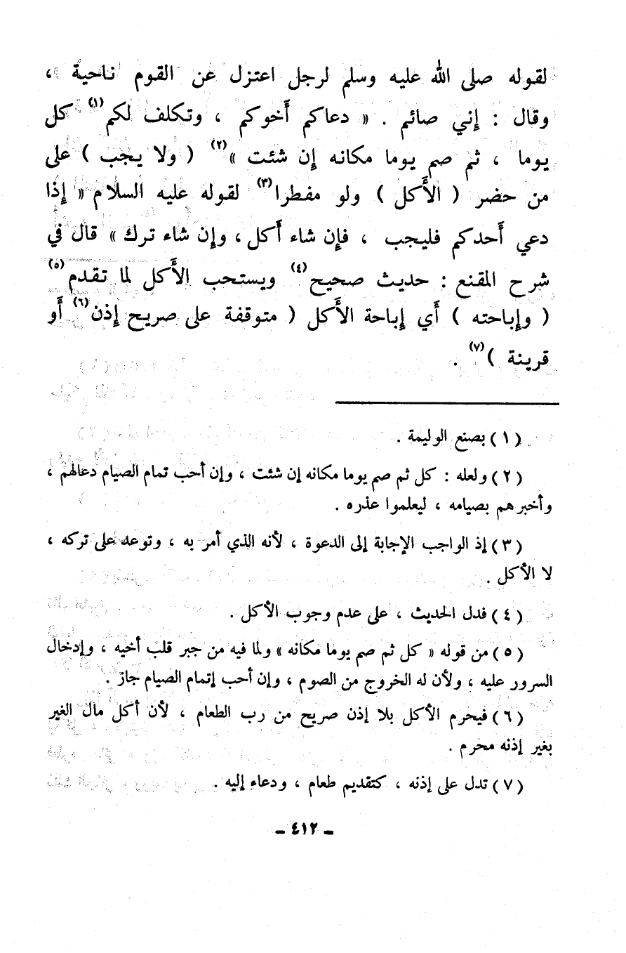 (¬7) تدل على إذنه، كتقديم طعام، ودعاء إليه.