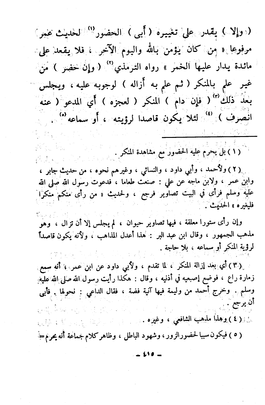 (¬1) بل يحرم عليه الحضور مع مشاهدة المنكر.