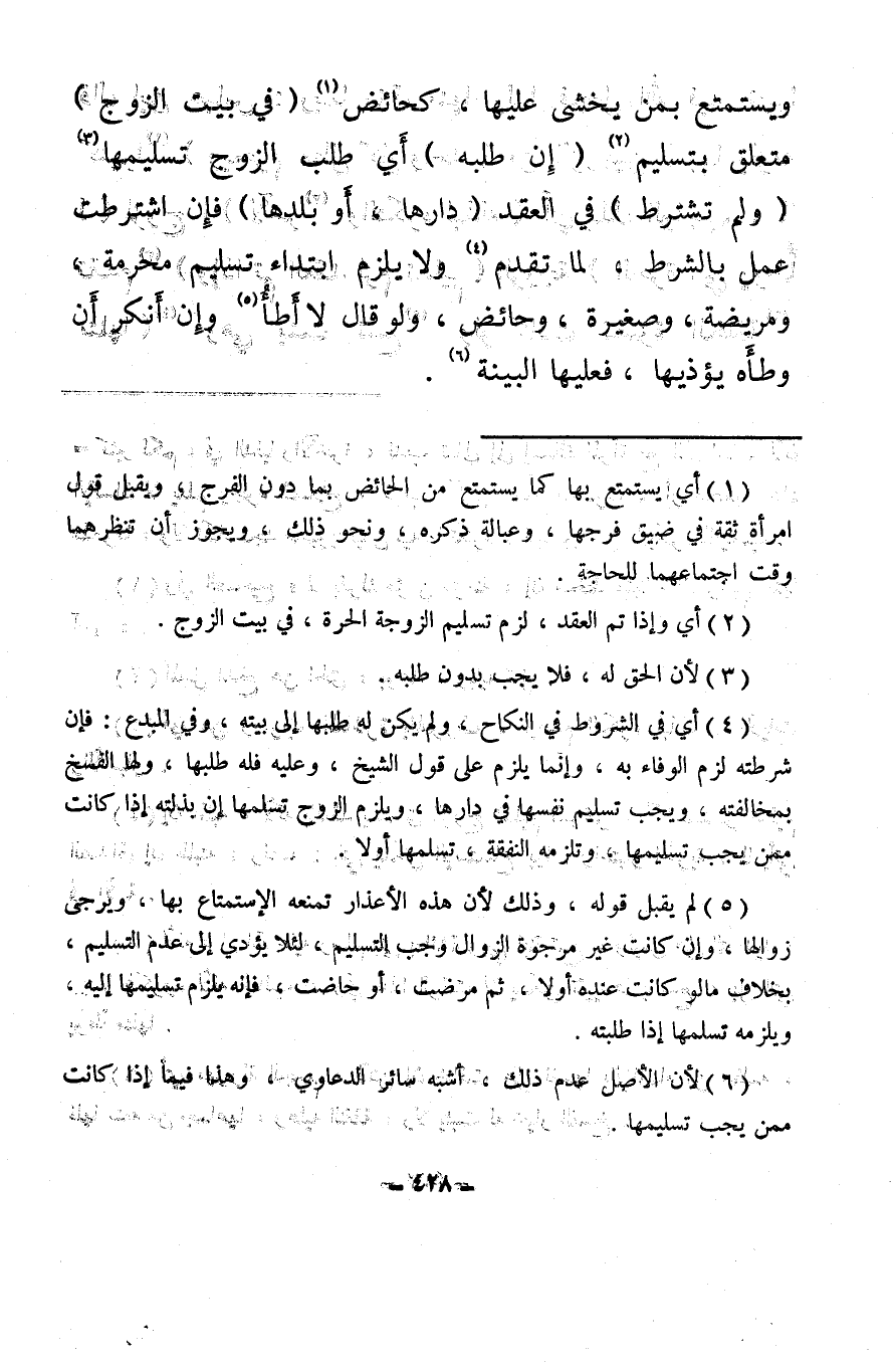 (¬4) أي في الشروط في النكاح، ولم يكن له طلبها إلى بيته، وفي المبدع: فإن شرطته لزم الوفاء به، وإنما يلزم على قول الشيخ، وعليه فله طلبها، ولها الفسخ بمخالفته، ويجب تسليم نفسها في دارها، ويلزم الزوج تسلمها إن بذلته إذا كانت ممن يجب تسليمها، وتلزمه النفقة، تسلمها أو لا.