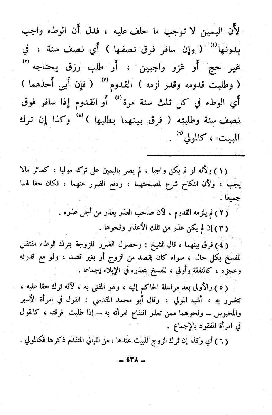 (¬1) ولأنه لو لم يكن واجبا، لم يصر باليمين على تركه موليا، كسائر ما لا يجب، ولأن النكاح شرع لمصلحتهما، ودفع الضرر عنهما، فكان حقا لهما جميعا.