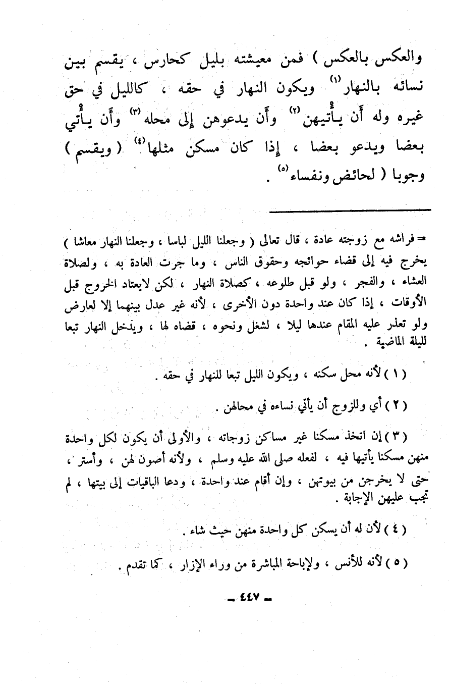 (¬3) إن اتخذ مسكنا غير مساكن زوجاته، والأولى أن يكون لكل واحدة منهن مسكنا يأتيها فيها، لفعله صلى الله عليه وسلم، ولأنه أصون لهن، وأستر، حتى لا يخرجن من بيوتهن، وإن أقام عند واحدة، ودعا الباقيات إلى بيتها، لم تجب عليهن الإجابة.