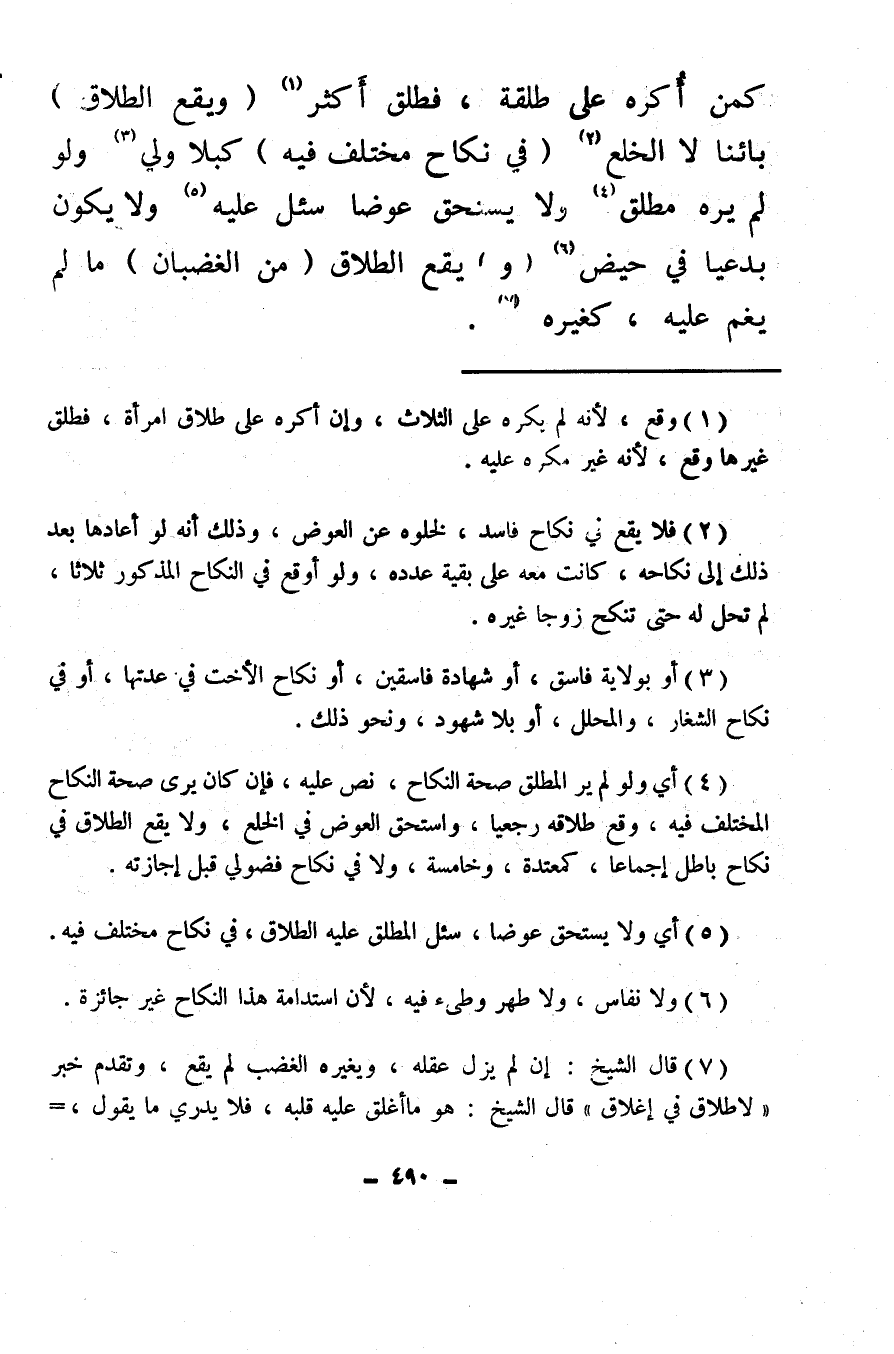 (¬7) قال الشيخ: إن لم يزل عقله، ويغيره الغضب لم يقع، وتقدم خبر «لا طلاق في إغلاق» قال الشيخ: هو ما أغلق عليه قلبه، فلا يدري ما يقول،