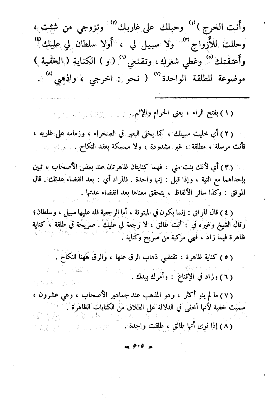 (¬5) كناية ظاهرة، تقتضي ذهاب الرق عنها، والرق ههنا النكاح.