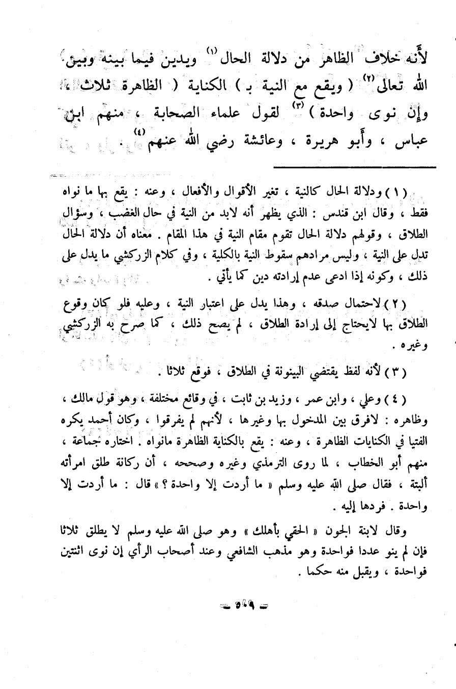(¬1) ودلالة الحال كالنية، تغير الأقوال والأفعال، وعنه: يقع بها ما نواه فقط، وقال ابن قندس: الذي يظهر أنه لا بد من النية في حال الغضب، وسؤال الطلاق، وقولهم دلالة الحال تقوم مقام النية في هذا المقام. معناه أن دلالة الحال تدل على النية، وليس مرادهم سقوط النية بالكلية، وفي كلام الزركشي ما يدل على ذلك، وكونه إذا ادعى عدم إرادته دين كما يأتي.