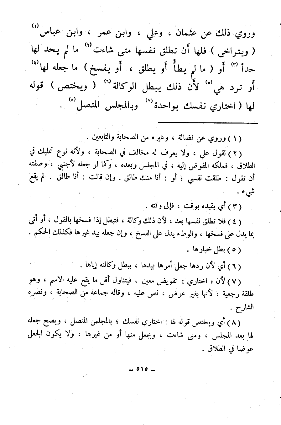 وروي ذلك عن عثمان، وعلي، وابن عمر، وابن عباس (¬1) (ويتراخى) فلها أن تطلق نفسها متى شاءت (¬2) ما لم يحد لها حدًا (¬3) أو (ما لم يطأْ أو يطلق، أو يفسخ) ما جعله لها (¬4) أو ترد هي (¬5) لأن ذلك يبطل الوكالة (¬6) (ويختص) قوله لها (اختاري نفسك بواحدة (¬7) وبالمجلس المتصل (¬8) .