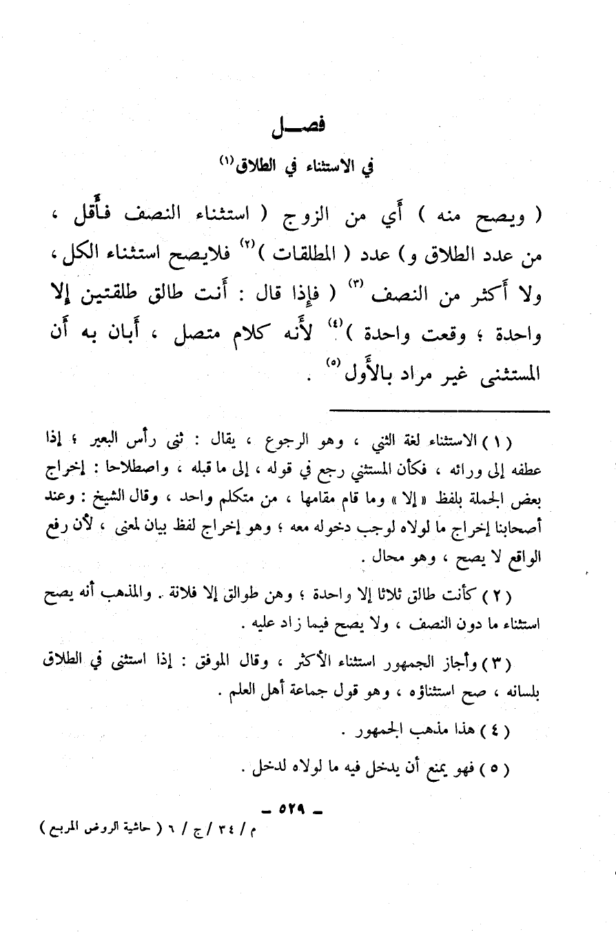 (¬3) وأجاز الجمهور استثناء الأكثر، وقال الموفق: إذا استثنى في الطلاق بلسانه، صح استثناؤه، وهو قول جماعة أهل العلم.