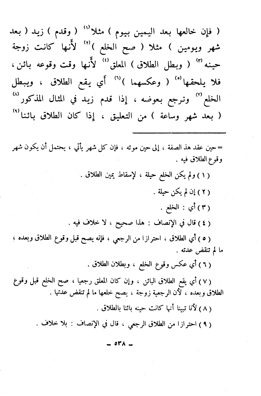 (¬7) أي يقع الطلاق البائن، وإن كان المعلق رجعيًا، صح الخلع قبل وقوع الطلاق وبعده، لأن الرجعية زوجة، يصح خلعها ما لم تنقض عدتها.