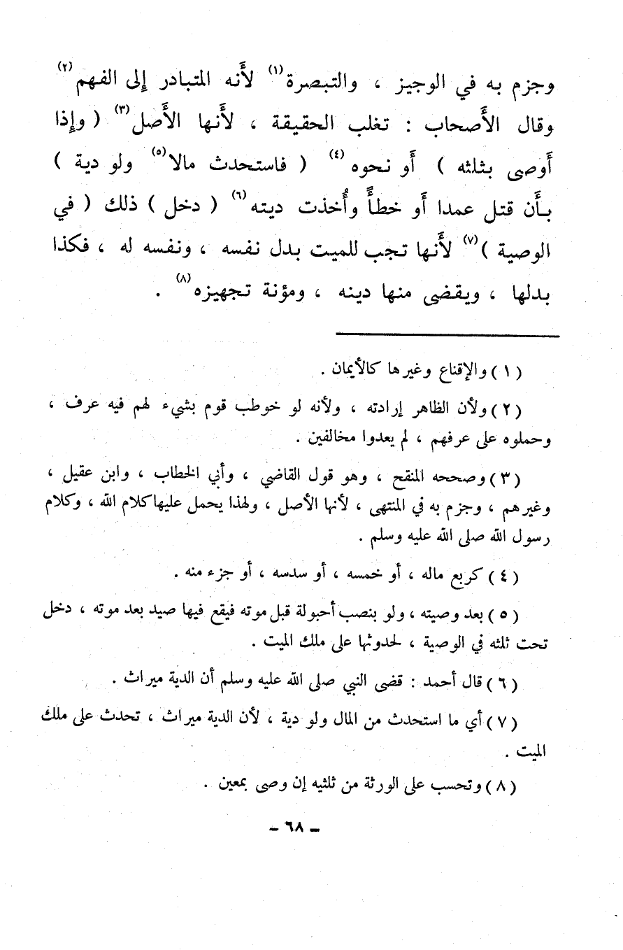 (¬8) وتحسب على الورثة من ثلثيه إن وصي بمعين.