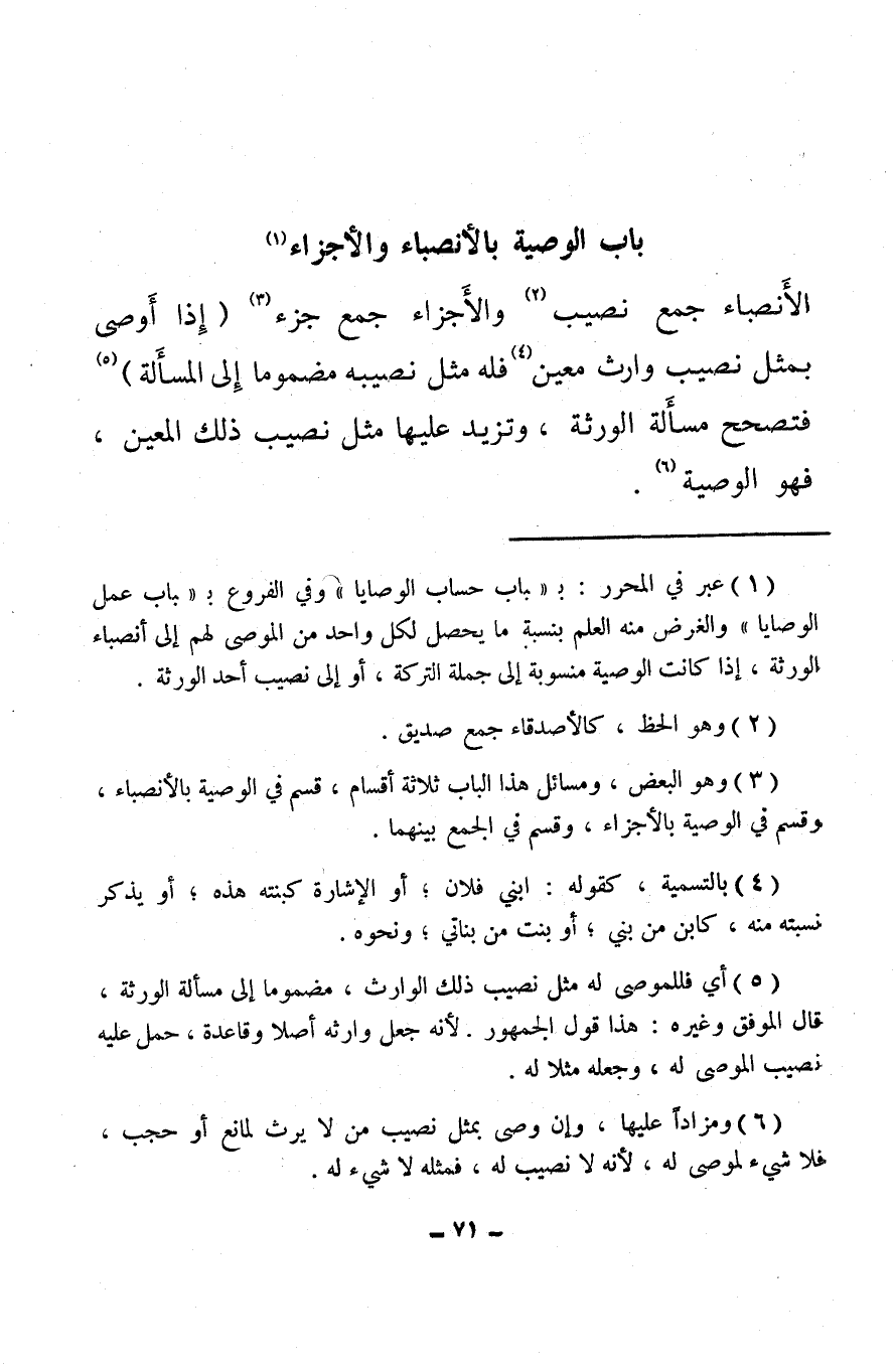 (¬3) وهو البعض، ومسائل هذا الباب ثلاثة أقسام، قسم في الوصية بالأنصباء، وقسم في الوصية بالأجزاء، وقسم في الجمع بينهما.