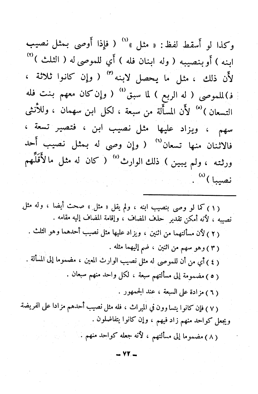 (¬1) كما لو وصي بنصيب ابنه، ولم يقل «مثل» صحت أيضا، وله مثل نصيبه، لأنه أمكن تقدير حذف المضاف، وإقامة المضاف إليه مقامه.