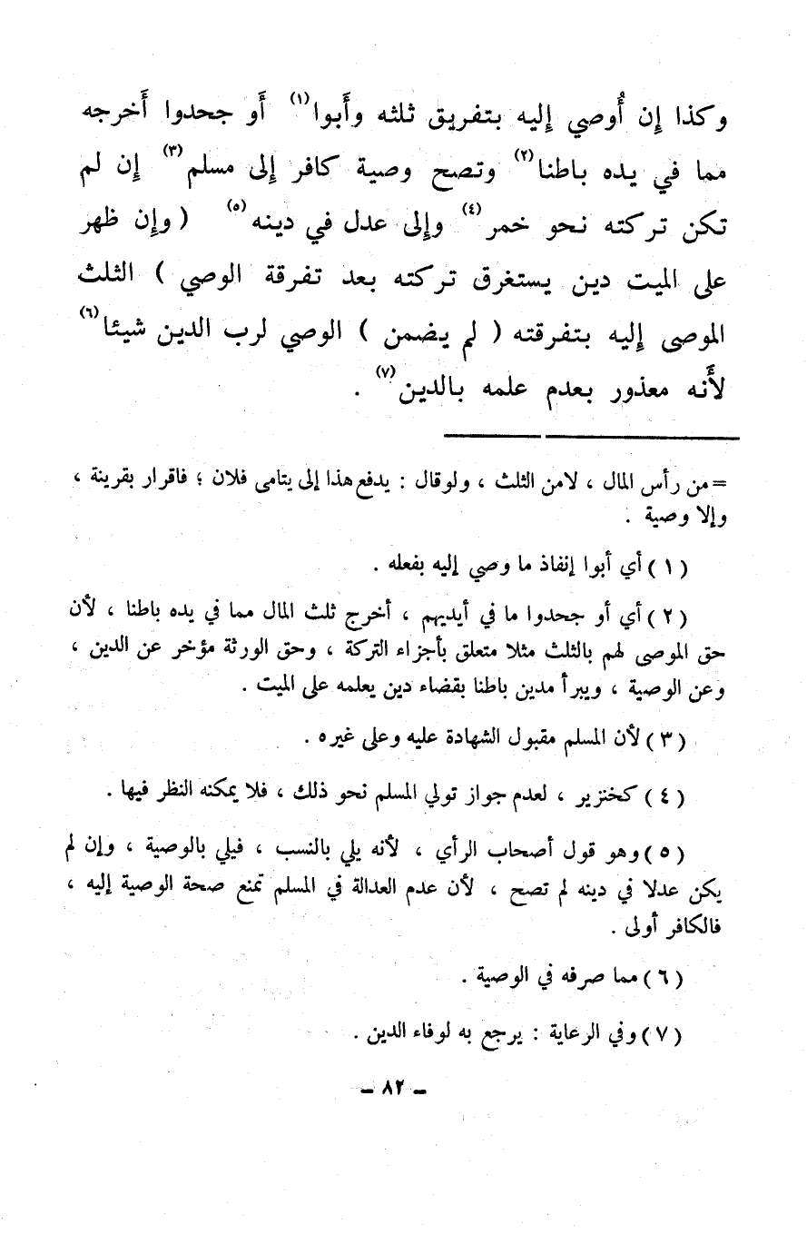 وكذا إِن أُوصي إليه بتفريق ثلثه وأَبوا (¬1) أَو جحدوا أَخرجه مما في يده باطنا (¬2) وتصح وصية كافر إلى مسلم (¬3) إن لم تكن تركته نحو خمر (¬4) وإِلى عدل في دينه (¬5) (وإِن ظهر على الميت دين يستغرق تركته بعد تفرقة الوصي) الثلث الموصي إليه بتفرقته (لم يضمن) الوصي لرب الدين شيئا (¬6) لأَنه معذور بعدم علمه بالدين (¬7) .