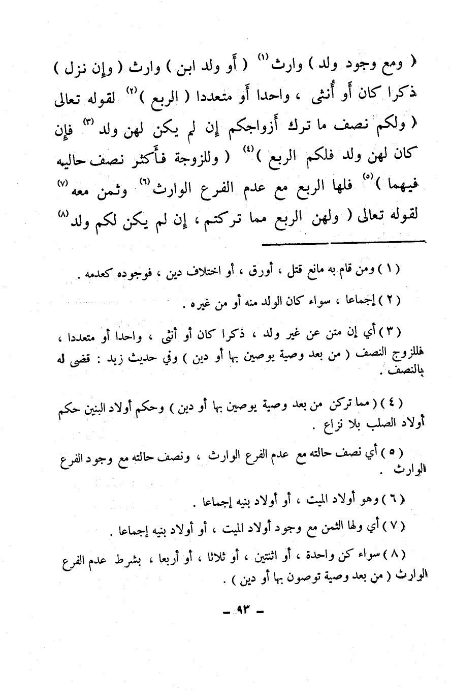 (¬5) أي نصف حالته مع عدم الفرع الوارث، ونصف حالته مع وجود الفرع الوارث.