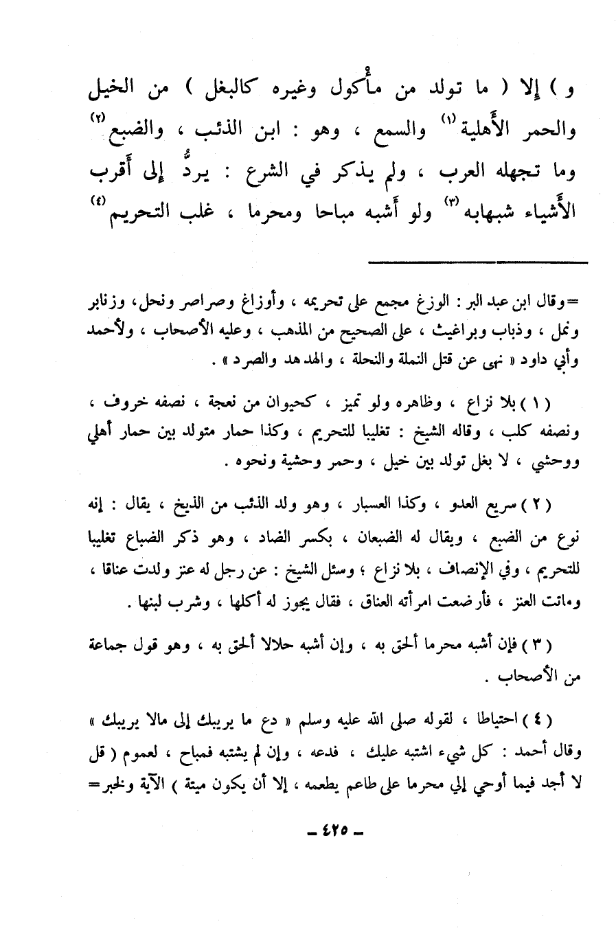 (¬4) احتياطا، لقوله صلى الله عليه وسلم «دع ما يريبك إلى مالا يريبك» وقال أحمد: كل شيء اشتبه عليك، فدعه وإن لم يشتبه فمباح، لعموم (قل لا أجد فيما أوحي إلي محرما على طاعم يطعمه، إلا أن يكون ميتة) الآية ولخبر