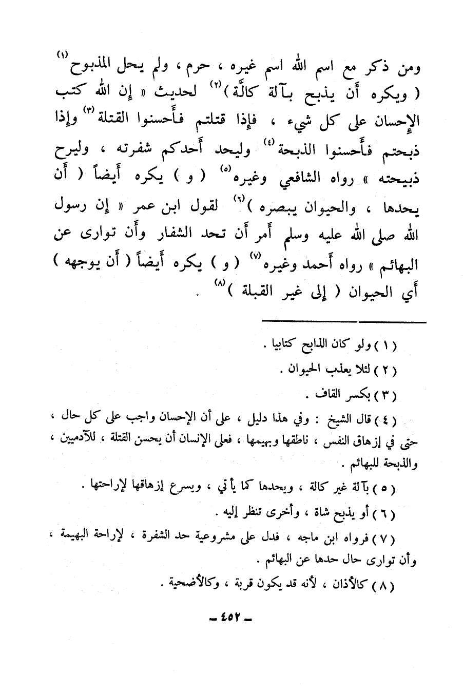 (¬5) بآلة غير كالة، ويحدها كما يأتي، ويسرع إزهاقها لإراحتها.
