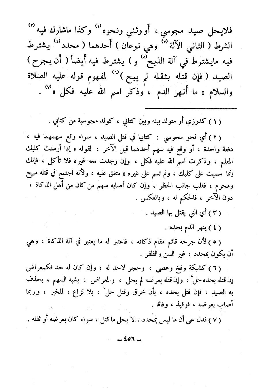(¬5) لأن جرحه قائم مقام ذكاته، فاعتبر له ما يعتبر في آلة الذكاة، وهي أن يكون بمحدد غير السن والظفر.
