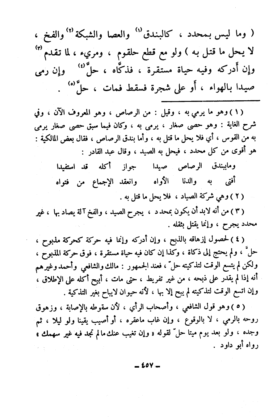 (¬3) من أنه لا بد أن يكون بمحدد، يجرح الصيد، والفخ آلة يصاد بها، غير محدد يجرح وإنما يقتل بثقله.