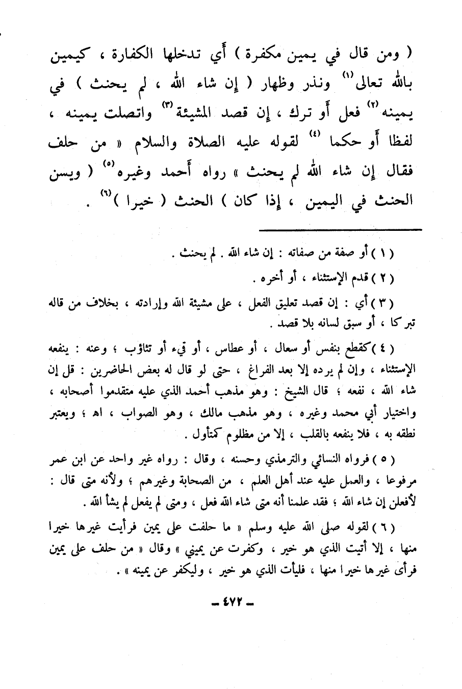 (¬5) فرواه النسائي والترمذي وحسنه، وقال: رواه غير واحد عن ابن عمر مرفوعا، والعمل عليه عند أكثر أهل العلم، من الصحابة وغيرهم، ولأنه متى قال: لأفعلن إن شاء الله فقد علمنا أنه متى شاء الله فعل، ومتى لم يفعل لم يشأ الله.